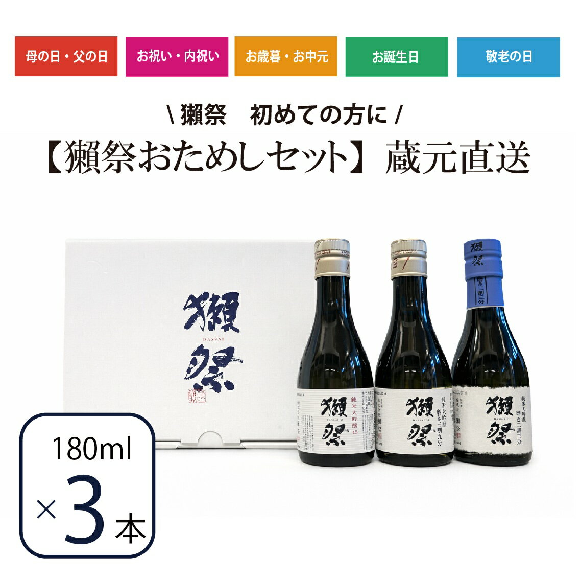 獺祭 だっさい おためしセット 180ml×33300円(税込/送料別)カード利用可・海外配送不可・翌日配送不可山口の地酒「獺祭」の定番3種を飲み比べ!【地酒屋 金澤留造酒店 楽天市場店】